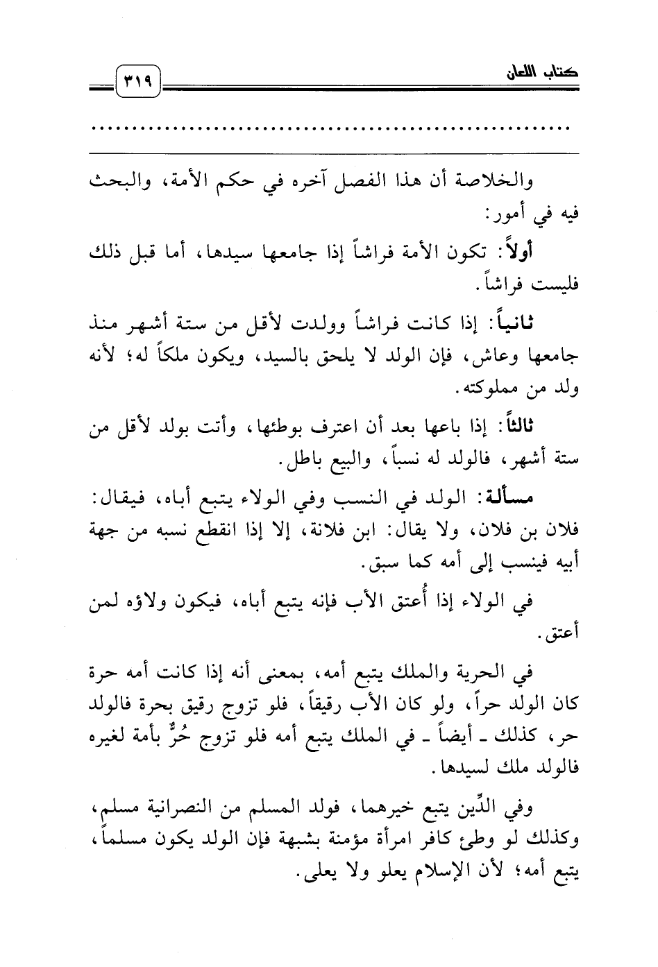 والخلاصة أن هذا الفصل آخره في حكم الأمة، والبحث فيه في أمور: