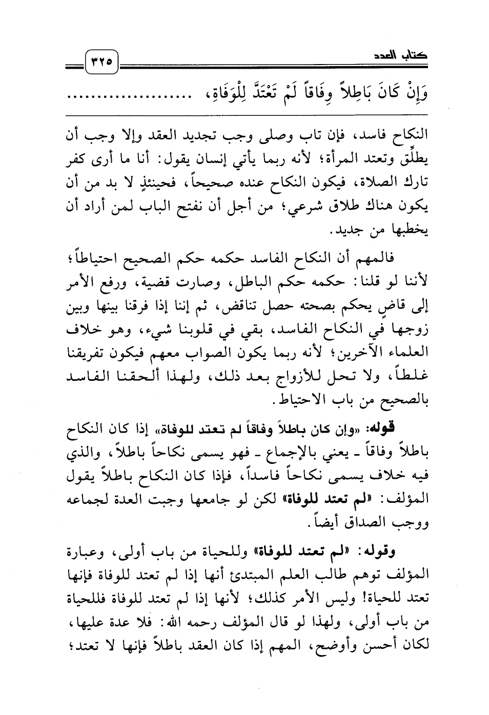 وقوله: «لم تعتد للوفاة» وللحياة من باب أولى، وعبارة المؤلف توهم طالب العلم المبتدئ أنها إذا لم تعتد للوفاة فإنها تعتد للحياة! وليس الأمر كذلك؛ لأنها إذا لم تعتد للوفاة فللحياة من باب أولى، ولهذا لو قال المؤلف رحمه الله: فلا عدة عليها، لكان أحسن وأوضح، المهم إذا كان العقد باطلاً فإنها لا تعتد؛