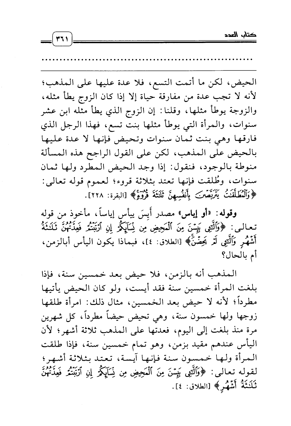 وقوله: «أو إياس» مصدر أَيِسَ ييأس إياساً، مأخوذ من قوله تعالى: {وَاللاََّّئِي يَئِسْنَ مِنَ الْمَحِيضِ مِنْ نِسَائِكُمْ إِنِ ارْتَبْتُمْ فَعِدَّتُهُنَّ ثَلاَثَةُ أَشْهُرٍ وَاللاََّّئِي لَمْ يَحِضْنَ} [الطلاق: 4]،