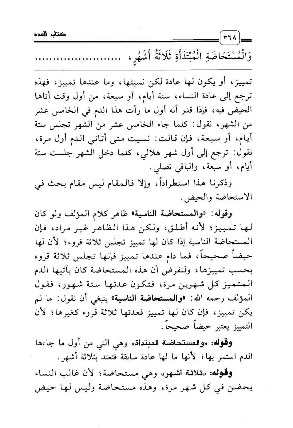 وقوله: «والمستحاضة المبتدأة» وهي التي من أول ما جاءها الدم استمر بها؛ لأنها ما لها عادة سابقة فتعتد بثلاثة أشهر.