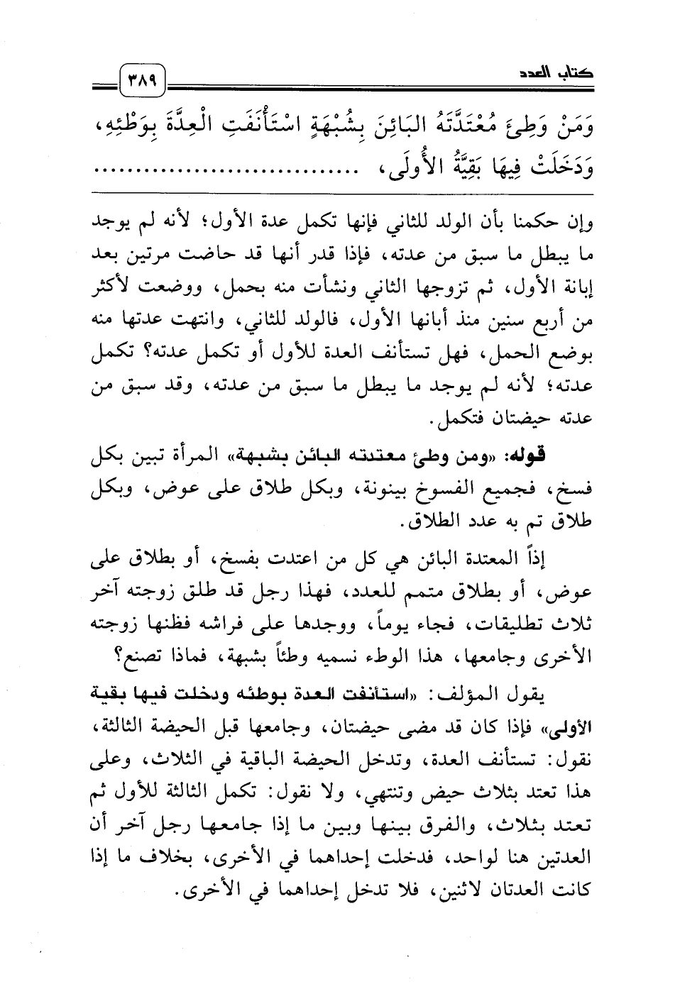 يقول المؤلف: «استأنفت العدة بوطئه ودخلت فيها بقية الأولى» فإذا كان قد مضى حيضتان، وجامعها قبل الحيضة الثالثة، نقول: تستأنف العدة، وتدخل الحيضة الباقية في الثلاث، وعلى هذا تعتد بثلاث حيض وتنتهي، ولا نقول: تكمل الثالثة للأول ثم تعتد بثلاث، والفرق بينها وبين ما إذا جامعها رجل آخر أن العدتين هنا لواحد، فدخلت إحداهما في الأخرى، بخلاف ما إذا كانت العدتان لاثنين، فلا تدخل إحداهما في الأخرى.