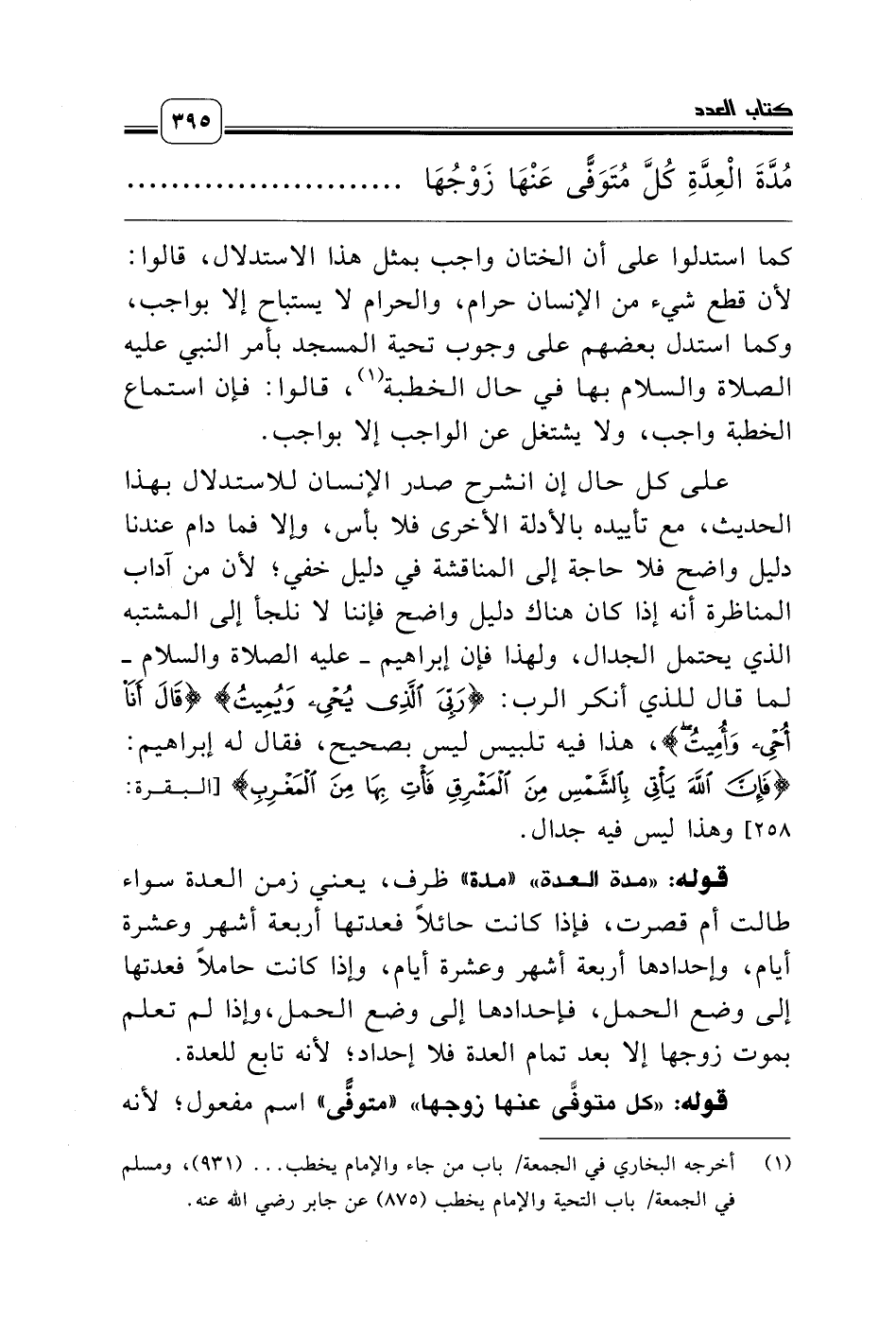 كما استدلوا على أن الختان واجب بمثل هذا الاستدلال، قالوا: لأن قطع شيء من الإنسان حرام، والحرام لا يستباح إلا بواجب، وكما استدل بعضهم على وجوب تحية المسجد بأمر النبي عليه الصلاة والسلام بها في حال الخطبة (¬1)، قالوا: فإن استماع الخطبة واجب، ولا يشتغل عن الواجب إلا بواجب.