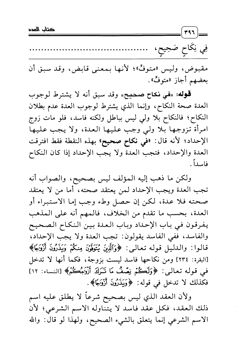 ولكن ما ذهب إليه المؤلف ليس بصحيح، والصواب أنه تجب العدة ويجب الإحداد لمن يعتقد صحته، أما من لا يعتقد صحته فلا عدة، لكن إن حصل وطء وجب إما الاستبراء أو العدة، بحسب ما تقدم من الخلاف، فالمهم أنه على المذهب يفرقون في باب الإحداد وباب العدة بين النكاح الصحيح والفاسد، ففي الفاسد يقولون: تجب العدة ولا يجب الإحداد، قالوا: والدليل قوله تعالى: {وَالَّذِينَ يُتَوَفَّوْنَ مِنْكُمْ وَيَذَرُونَ أَزْوَاجًا} [البقرة: 234] ومن نكاحها فاسد ليست بزوجة، فكما أنها لا تدخل في قوله تعالى: {وَلَكُمْ نِصْفُ مَا تَرَكَ أَزْوَاجُكُمْ} [النساء: 12] فكذلك لا تدخل في قوله: {وَيَذَرُونَ أَزْوَاجًا}.