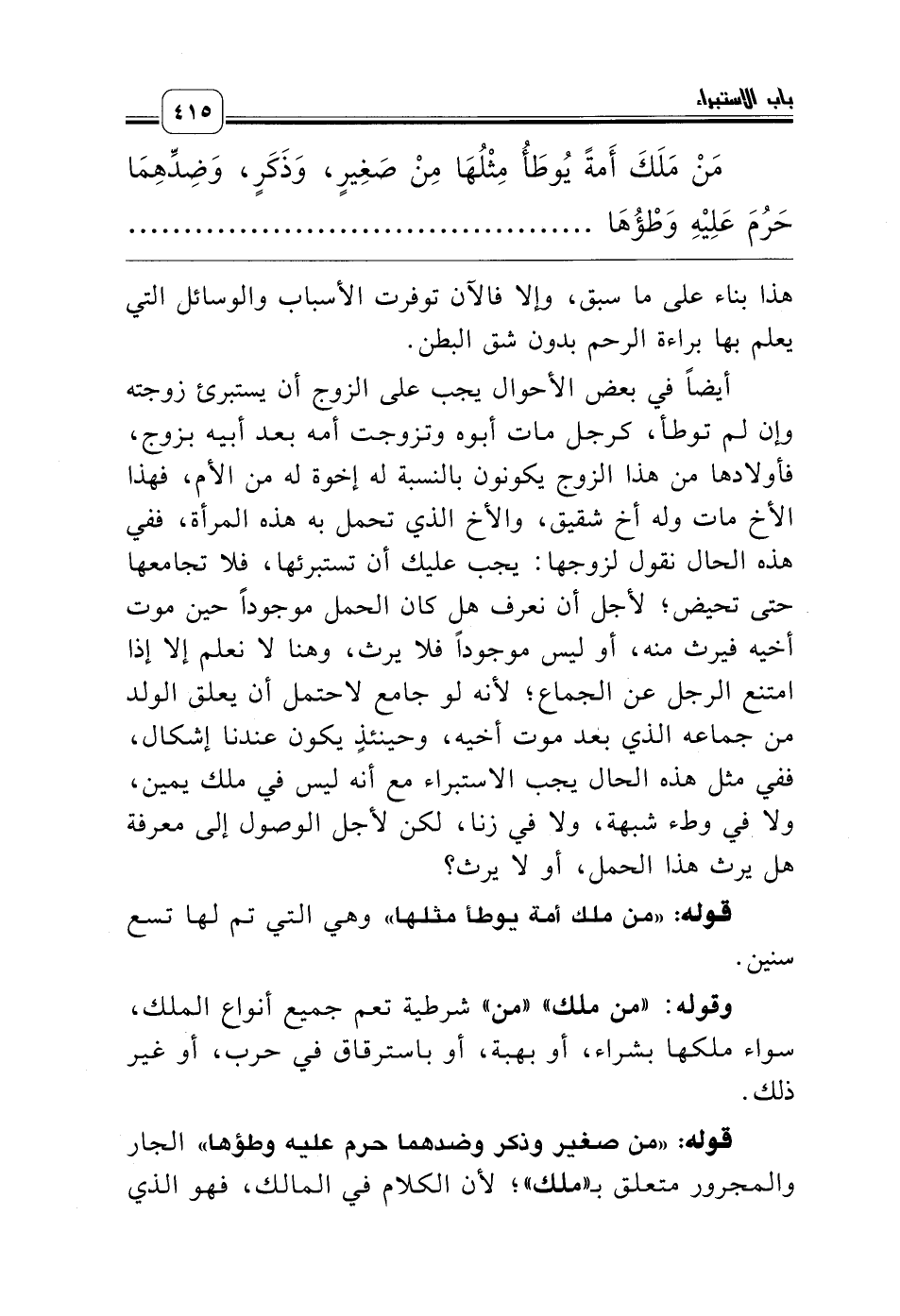 وقوله: «من ملك» «من» شرطية تعم جميع أنواع الملك، سواء ملكها بشراء، أو بهبة، أو باسترقاق في حرب، أو غير ذلك.