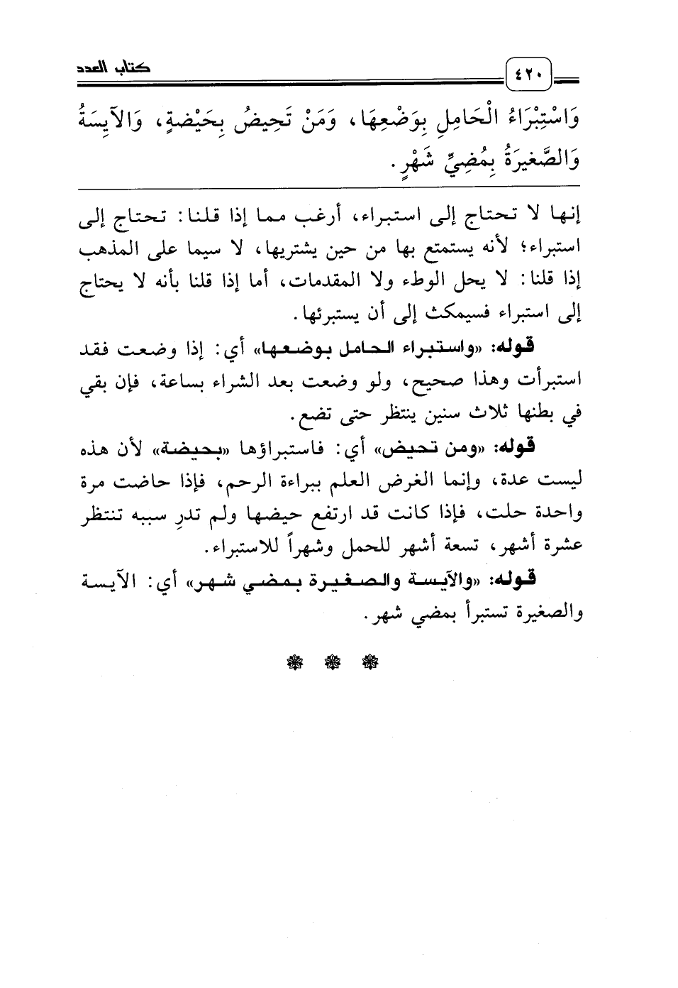 قوله: «والآيسة والصغيرة بمضي شهر» أي: الآيسة والصغيرة تستبرأ بمضي شهر.