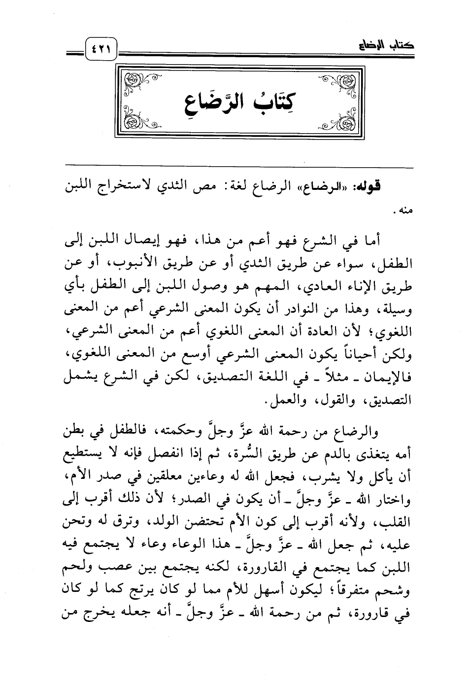 قوله: «الرضاع» الرضاع لغة: مص الثدي لاستخراج اللبن منه.