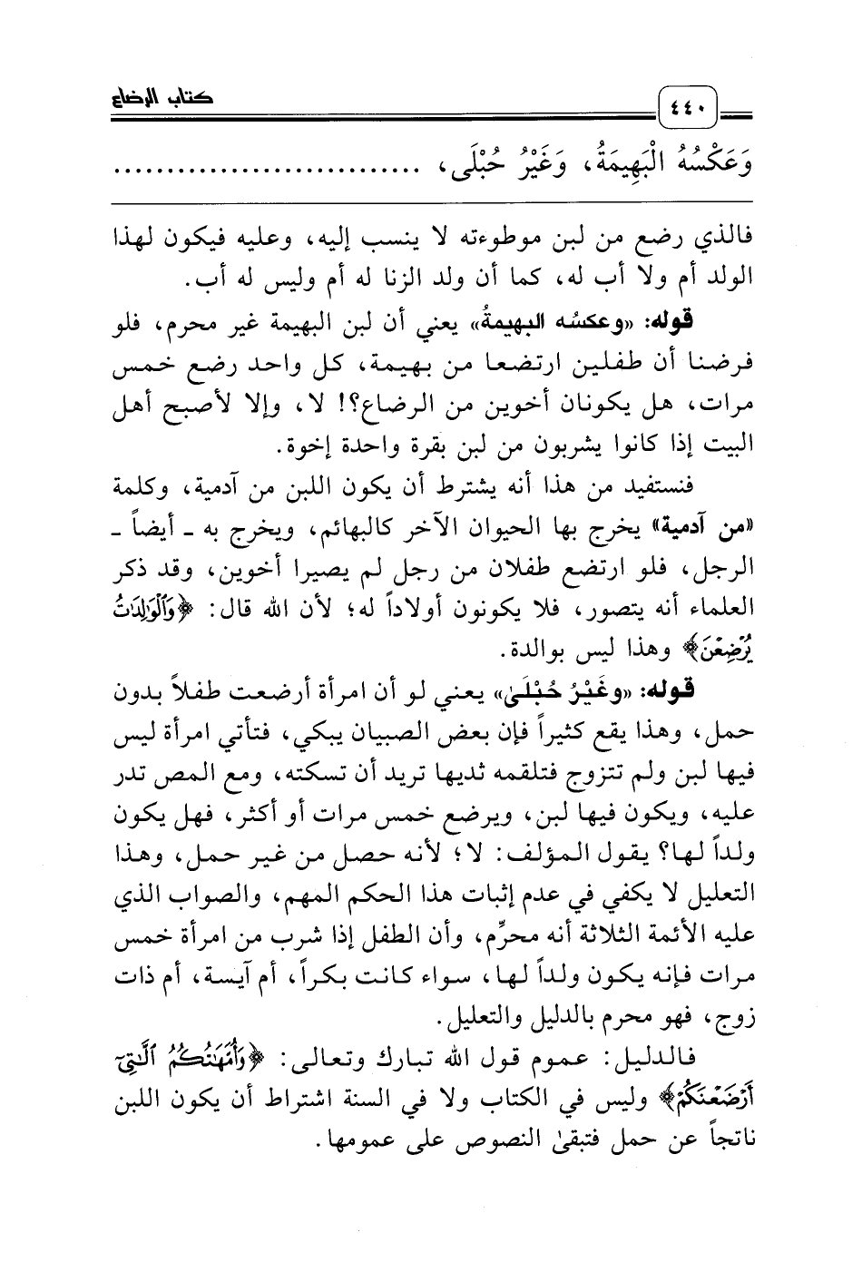 قوله: «وعكسُه البهيمةُ» يعني أن لبن البهيمة غير محرم، فلو فرضنا أن طفلين ارتضعا من بهيمة، كل واحد رضع خمس مرات، هل يكونان أخوين من الرضاع؟! لا، وإلا لأصبح أهل البيت إذا كانوا يشربون من لبن بقرة واحدة إخوة.