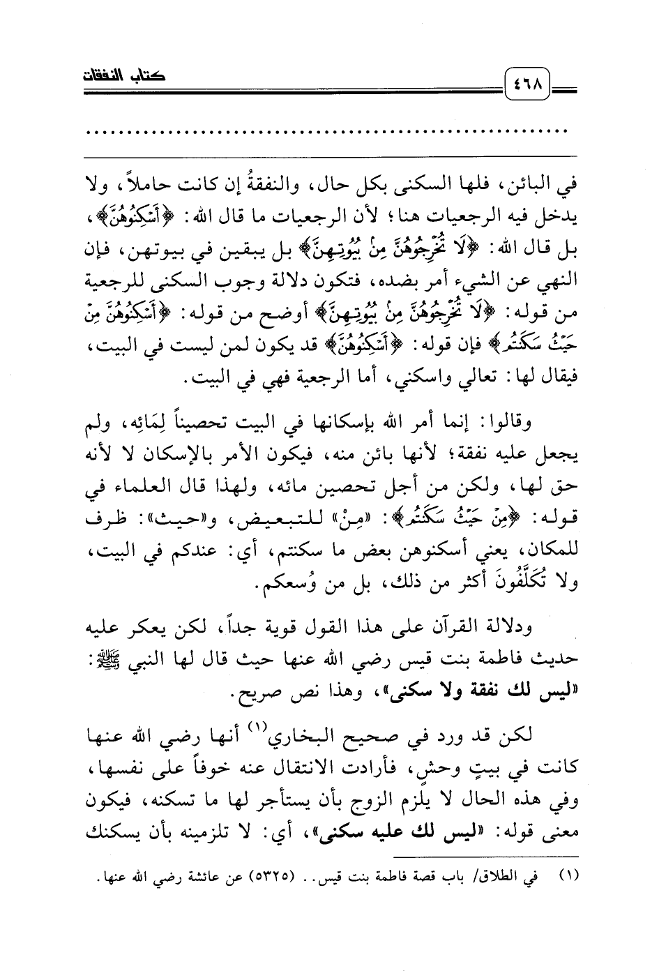 (¬1) في الطلاق/ باب قصة فاطمة بنت قيس .. (5325) عن عائشة رضي الله عنها.