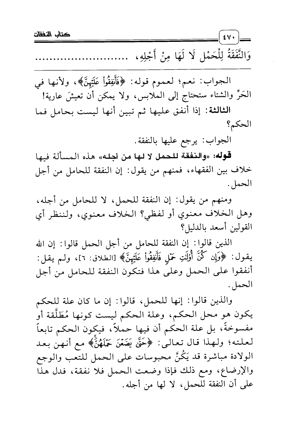 قوله: «والنفقة للحمل لا لها من أجله» هذه المسألة فيها خلاف بين الفقهاء، فمنهم من يقول: إن النفقة للحامل من أجل الحمل.