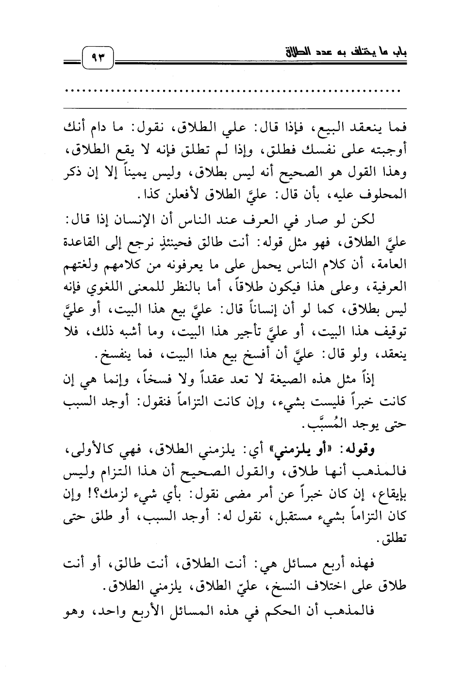فهذه أربع مسائل هي: أنت الطلاق، أنت طالق، أو أنت طلاق على اختلاف النسخ، عليّ الطلاق، يلزمني الطلاق.