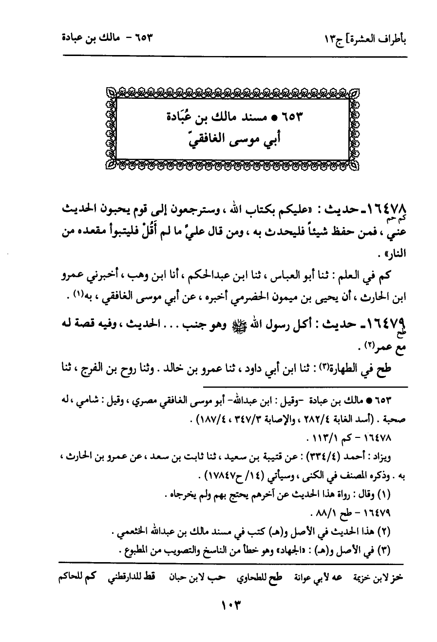 653 ـ مسند مالك بن عبادة أبي موسى الغافقي