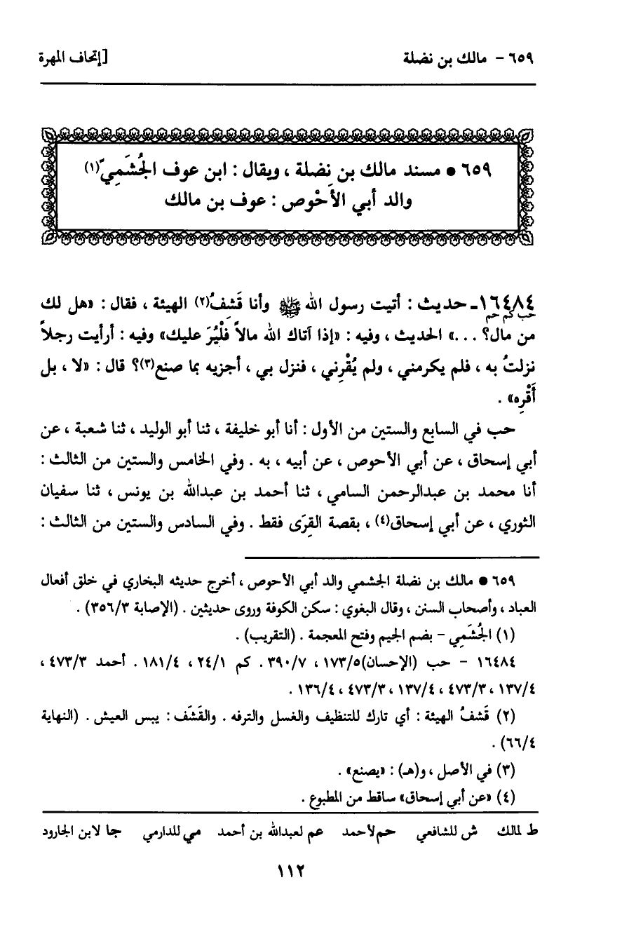 659 ـ مسند مالك بن نضلة، ويقال: ابن عوف الجشمي والد أبي الأحوص: عوف بن مالك