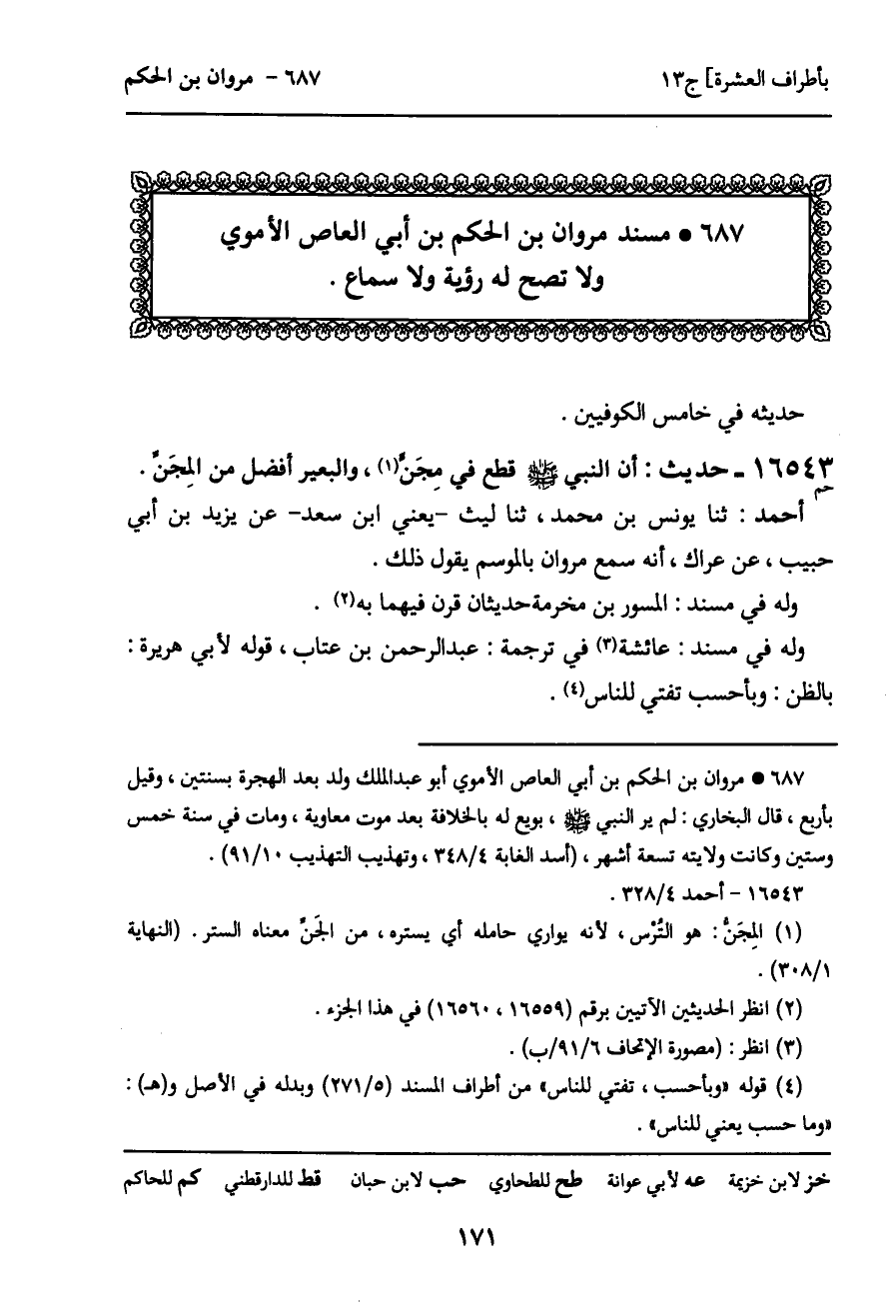 687 ـ مسند مروان بن الحكم بن أبي العاص الأموي ولا تصح له رؤية ولا سماع.
