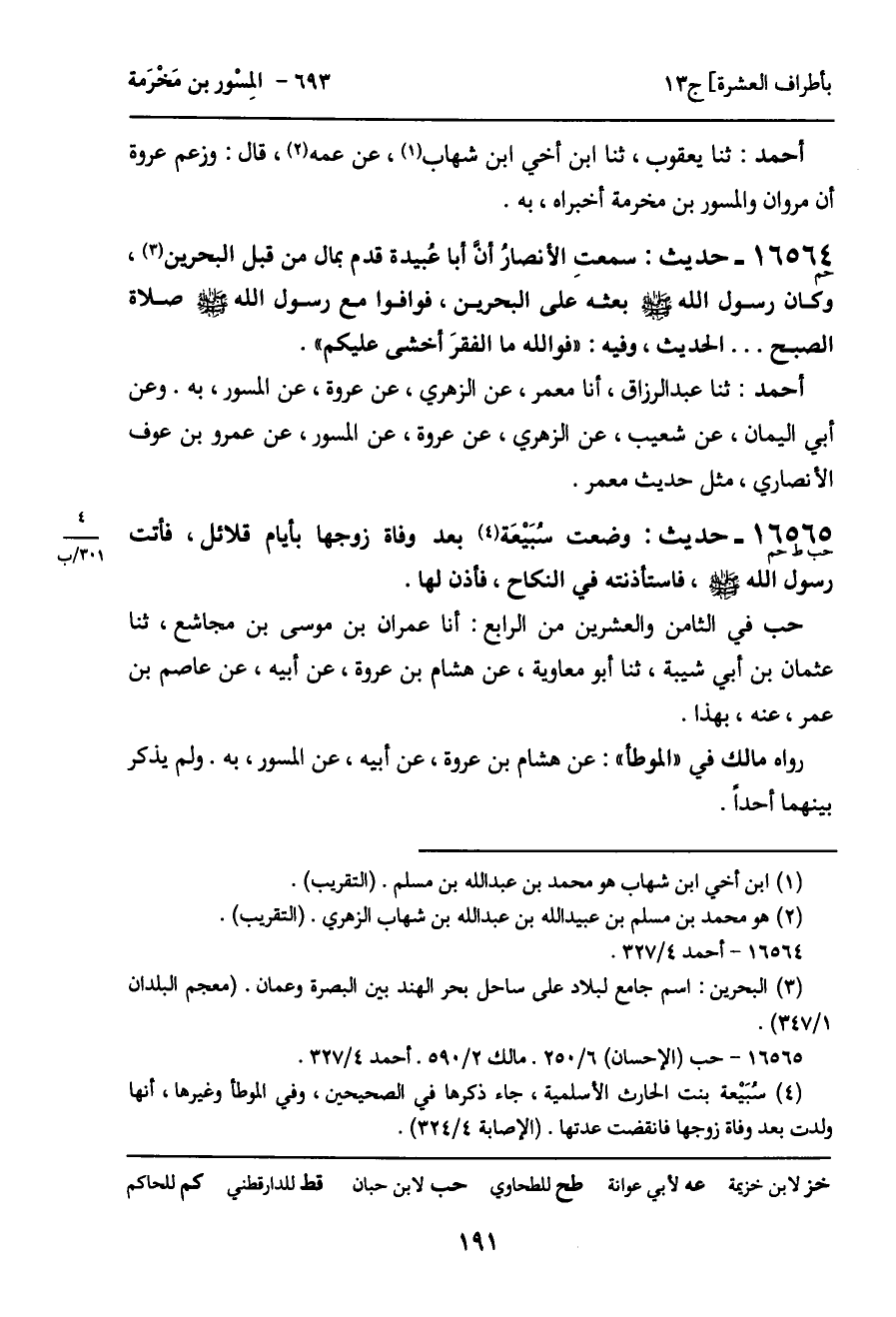أحمد: ثنا عبد الرزاق، أنا معمر، عن الزهري، عن عروة، عن المسور، به. وعن أبي اليمان، عن شعيب، عن الزهري، عن عروة، عن المسور، عن عمرو بن عوف الأنصاري، مثل حديث معمر.