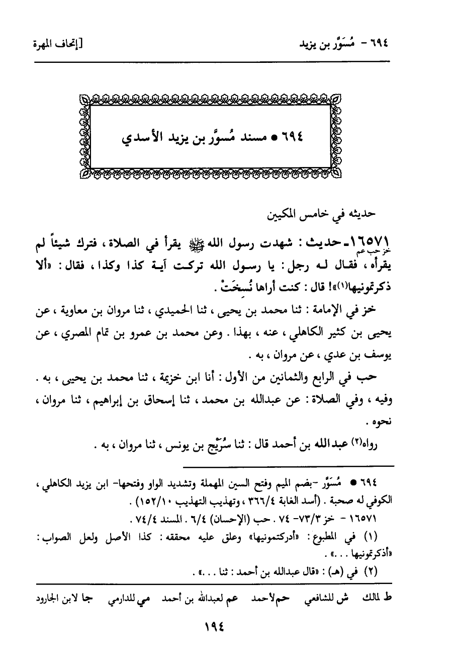 رواه عبد الله بن أحمد قال: ثنا سُريج بن يونس، ثنا مروان، به.