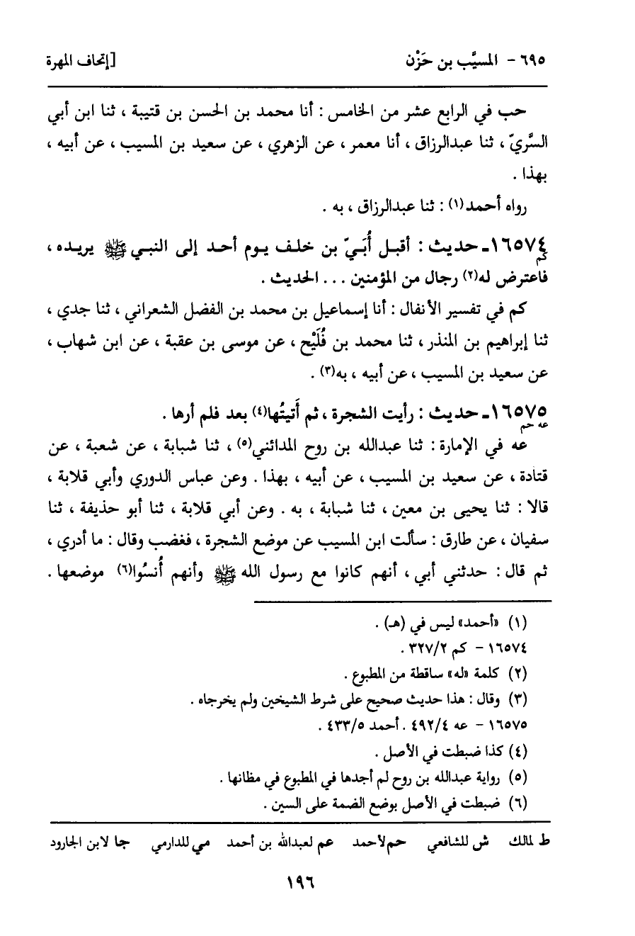 عه في الإمارة: ثنا عبد الله بن روح المدائني، ثنا شبابة، عن شعبة، عن قتادة، عن سعيد بن المسيب، عن أبيه، بهذا. وعن عباس الدوري وأبي قلابة، قالا: ثنا يحيى بن معين، ثنا شبابة، به. وعن أبي قلابة، ثنا أبو حذيفة، ثنا سفيان، عن طارق: سألت ابن المسيب عن موضع الشجرة، فغضب وقال: ما أدري، ثم قال: حدثني أبي، أنهم كانوا مع رسول الله - صَلَّى اللَّهُ عَلَيْهِ وَسَلَّمَ - وأنهم أُنسُوا موضعها.