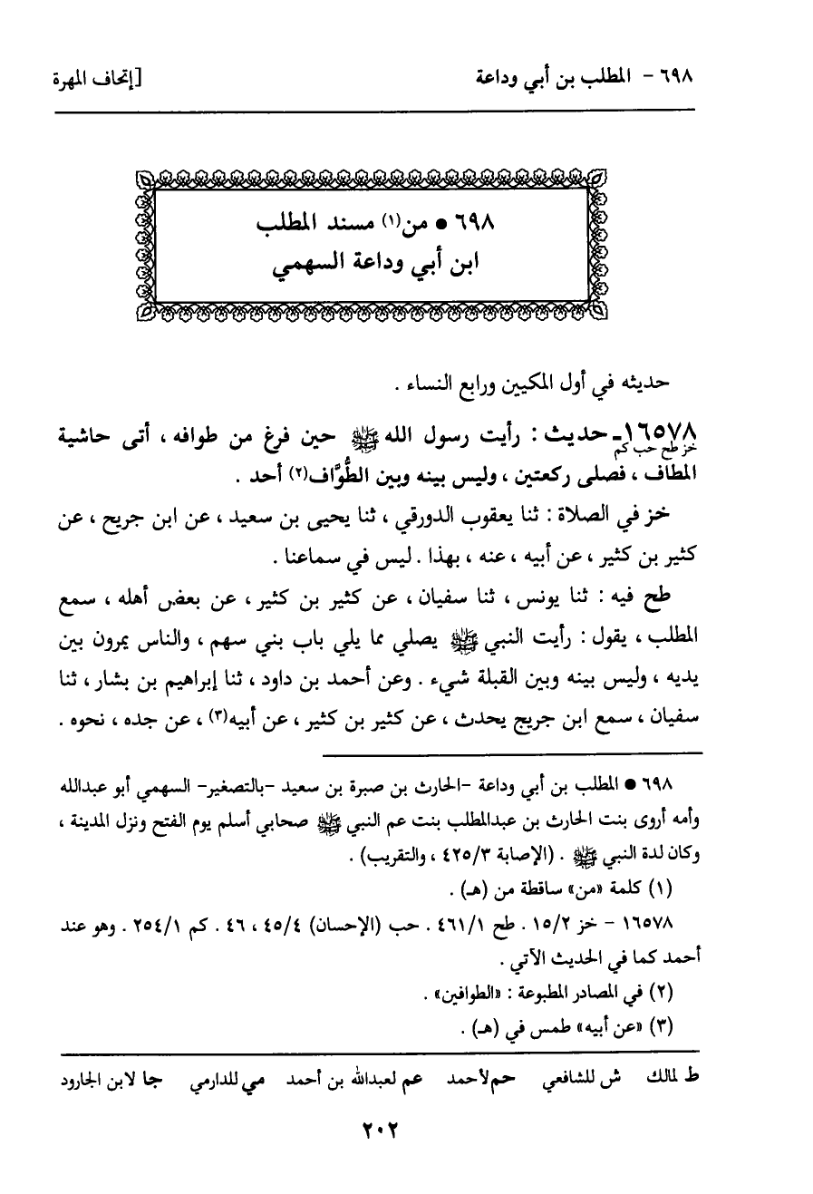 698 ـ من مسند المطلب ابن أبي وداعة السهمي