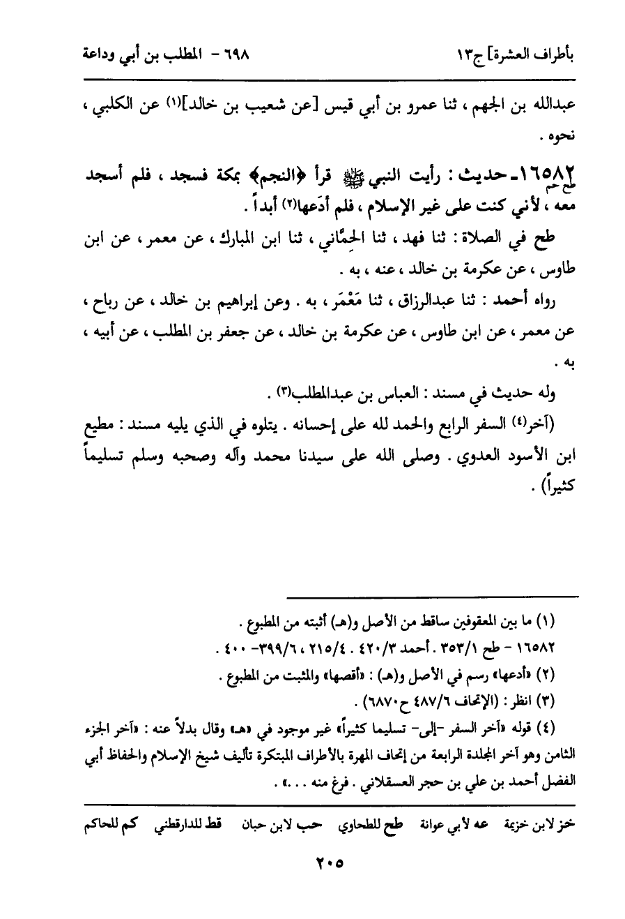 (آخر السفر الرابع والحمد لله على إحسانه. يتلوه في الذي يليه مسند: مطيع ابن الأسود العدوي. وصلى الله على سيدنا محمد وآله وصحبه وسلم تسليما كثيرا) .