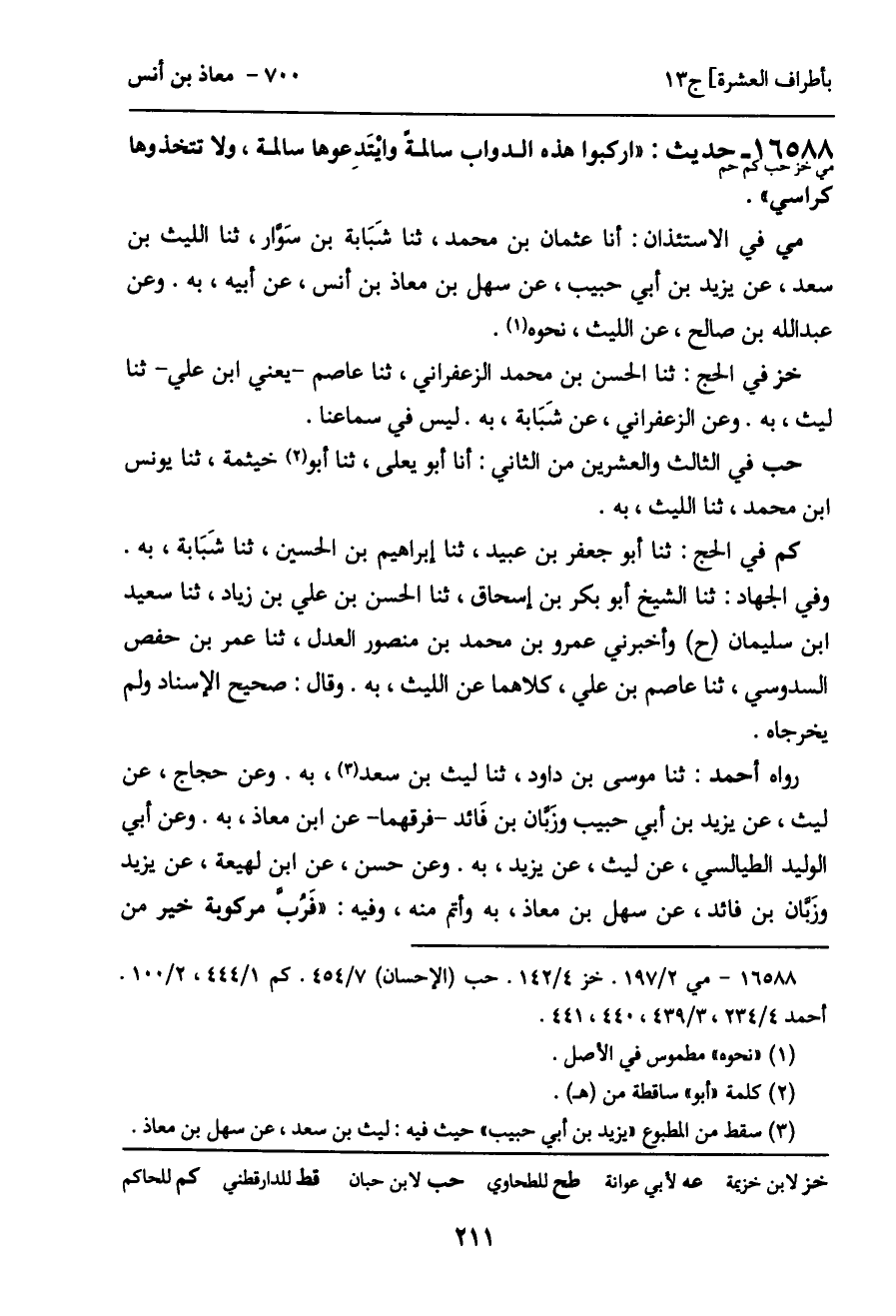 رواه أحمد: ثنا موسى بن داود، ثنا ليث بن سعد، به. وعن حجاج، عن ليث، عن يزيد بن أبي جيب وزبان بن فَائد - فرقهما - عن ابن معاذ، به. وعن أبي الوليد الطيالسي، عن ليث، عن يزيد، به. وعن حسن، عن ابن لهيعة، عن يزيد وزَبان بن فائد، عن سهل بن معاذ، به وأتم منه، وفيه: "فَرُب مركوبة خير من