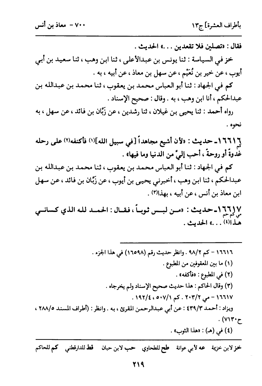 كم في الجهاد: ثنا أبو العباس محمد بن يعقوب، ثنا محمد بن عبد الله بن عبد الحكم، ثنا ابن وهب، أخبرني يحيى بن أيوب، عن زَبَّان بن فائد، عن سهل ابن معاذ بن أنس، عن أبيه، بهذا.