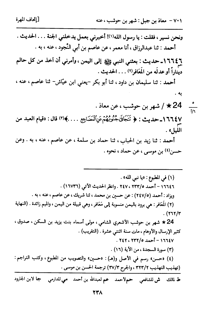 16646 - حديث (حم) : بعثني النبي - صَلَّى اللَّهُ عَلَيْهِ وَسَلَّمَ - إلى اليمن، وأمرني أن آخذ من كل حالم دينارا أو عدله من المَعَافر ... الحديث.