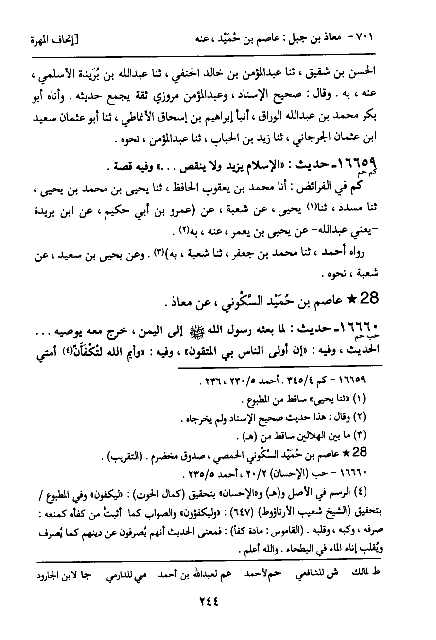 16659 - حديث (كم حم) : "الإسلام يزيد ولا ينقص ... " وفيه قصة.