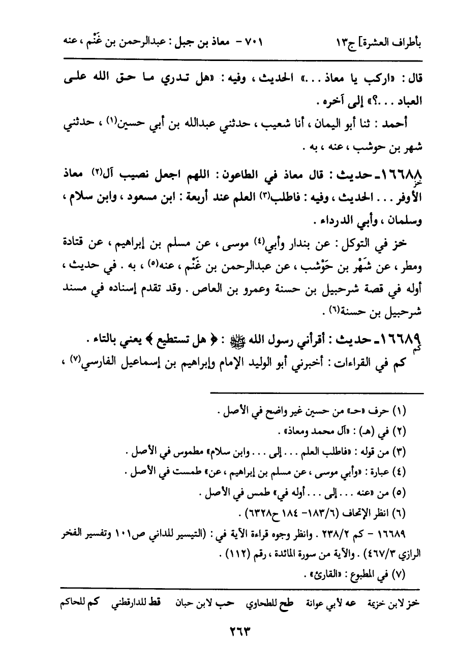 16688 - حديث (خز) : قال معاذ في الطاعون: اللهم اجعل نصيب آل معاذ الأوفر ... الحديث، وفيه: فاطلب العلم عند أربعة: ابن مسعود، وابن سلام، وسلمان، وأبي الدرداء.