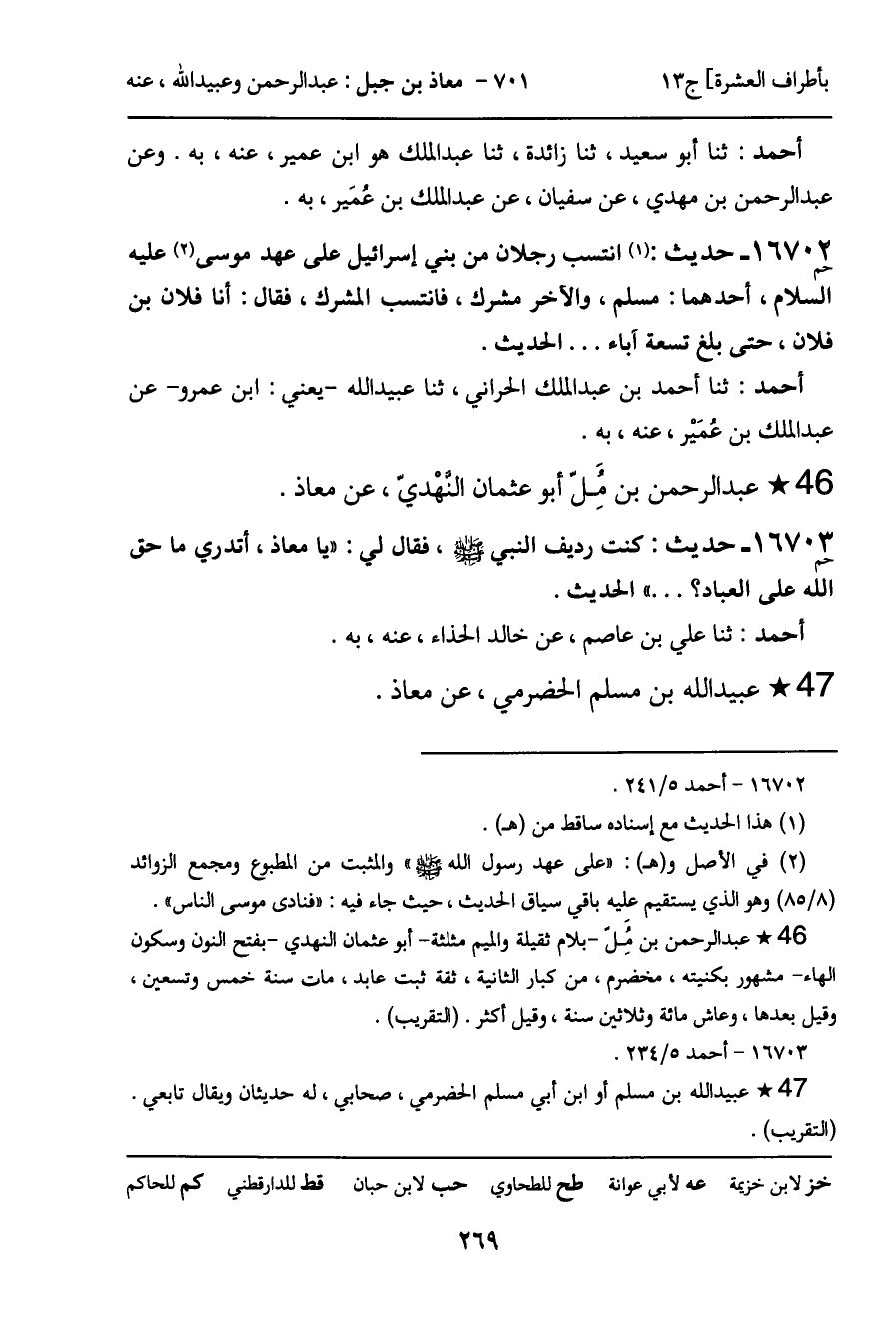 16702 - حديث (حم) : انتسب رجلان من بني إسرائيل على عهد موسى عليه السلام، أحدهما: مسلم، والآخر مشرك، فانتسب المشرك، فقال: أنا فلان بن فلان، حتى بلغ تسعة آباء ... الحديث.