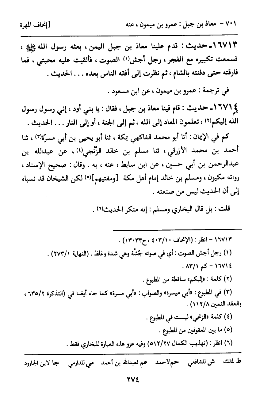 كم في الإيمان: أنا أبو محمد الفاكهي بمكة، ثنا أبو يحيى بن أبي مسرّة، ثنا أحمد بن محمد الأزرقي، ثنا مسلم بن خالد الزنجي، عن عبد الله بن عبد الرحمن بن أبي حسين، عن ابن سابط، عنه، به. وقال: صحيح الإسناد، رواته مكيون، ومسلم بن خالد إمام أهل مكة [ومفتيهم] لكن الشيخان قد نسباه إلى أن الحديث ليس من صنعته.