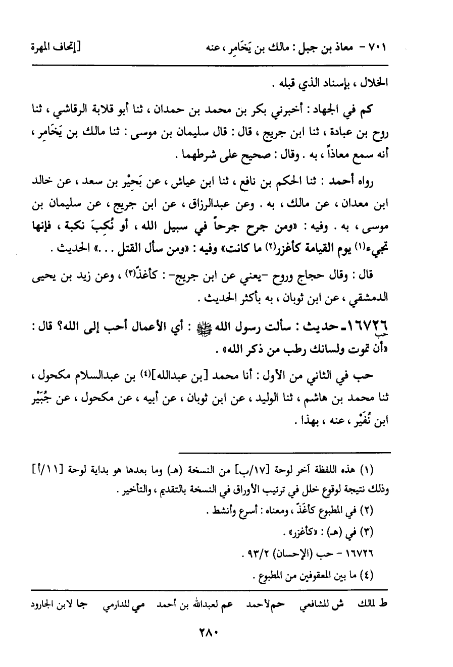 16726 - حديث (حب) : سألت رسول الله - صَلَّى اللَّهُ عَلَيْهِ وَسَلَّمَ -: أي الأعمال أحب إلى الله؟ قال: "أن تموت ولسانك رطب من ذكر الله".