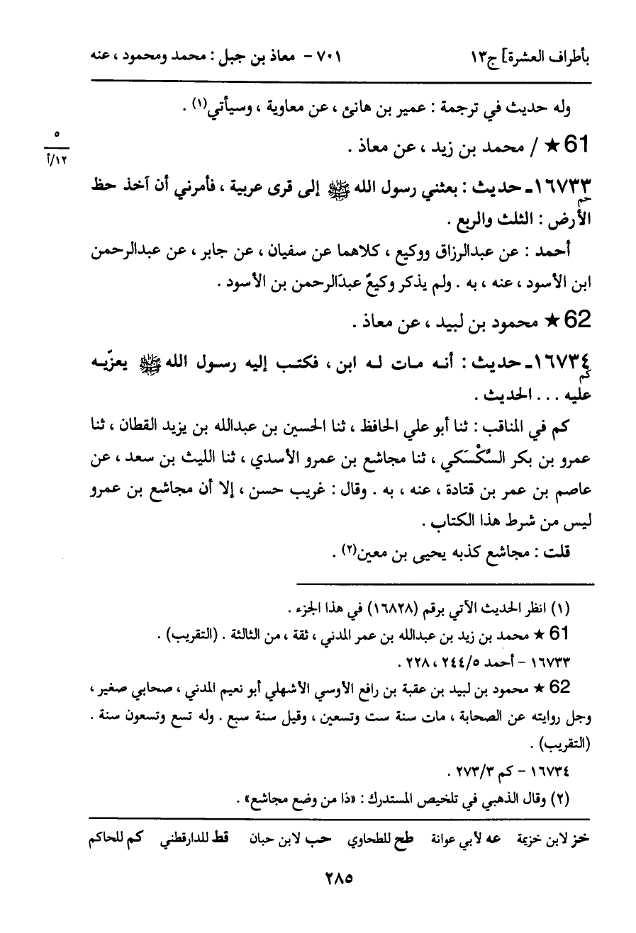 16733 - حديث (حم) : بعثني رسول الله - صَلَّى اللَّهُ عَلَيْهِ وَسَلَّمَ - إلى قرى عربية، فأمرني أن آخذ حظ الأرض: الثلث والربع.