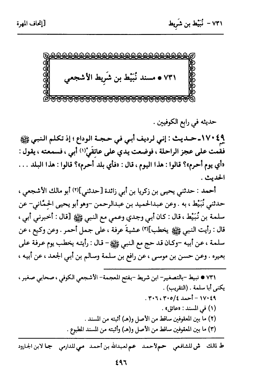 731 ـ مسند نبَيْط بن شرِيط الأشجعي