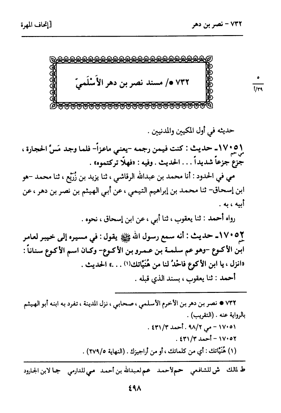 732 ـ مسند نصر بن دهر الأسلمي