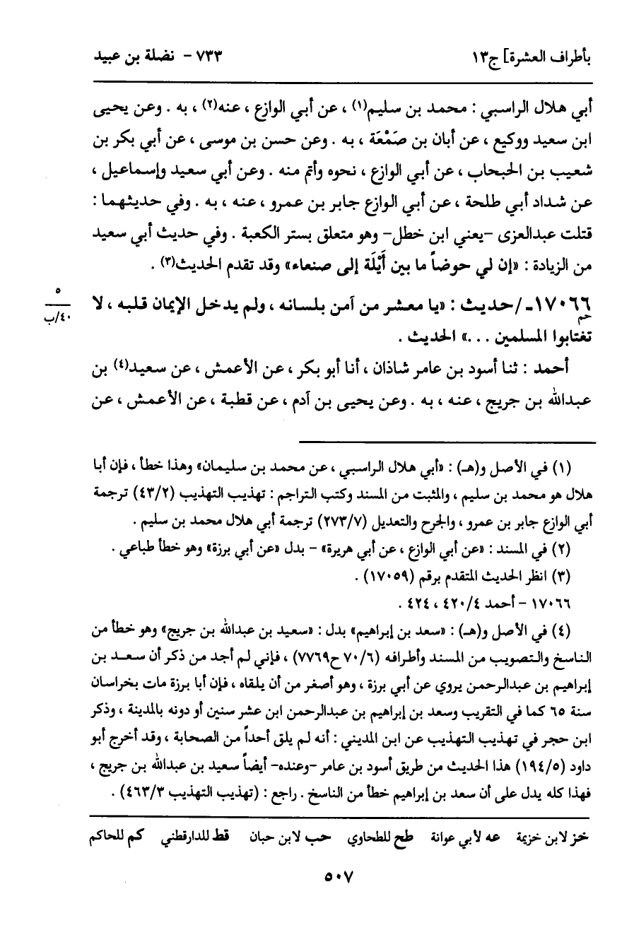 17066 - حديث (حم) : "يا معشر من آمن بلسانه، ولم يدخل الإيمان قلبه، لا تغتابوا المسلمين ... " الحديث.