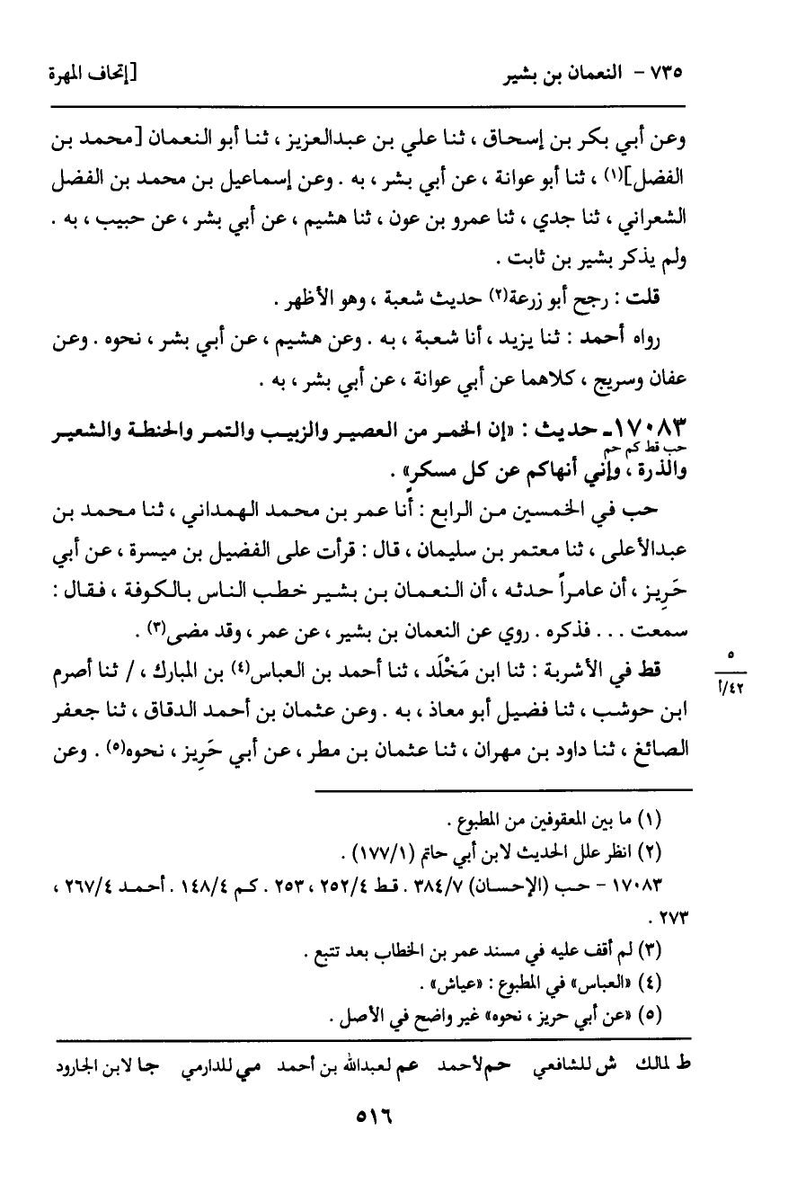 17083 - حديث (حب قط كم حم) : "إن الخمر من العصير والزبيب والتمر والحنطة والشعير والذرة، وإني أنهاكم عن كل مسكر".