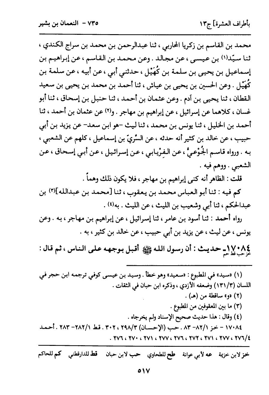 17084 - حديث (خز حب قط حم) : أن رسول الله - صَلَّى اللَّهُ عَلَيْهِ وَسَلَّمَ - أقل بوجهه على الناس، ثم قال: