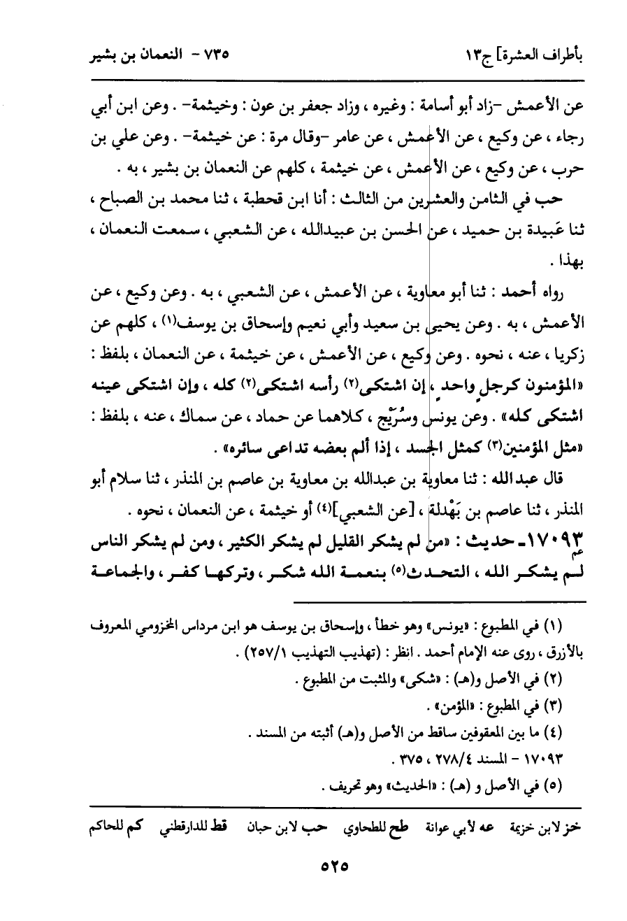 17093 - حديث (عم) : "من لم يشكر القليل لم يشكر الكثير، ومن لم يشكر الناس لم يشكر الله، التحدث بنعمة الله شكر، وتركها كفر، والجماعة