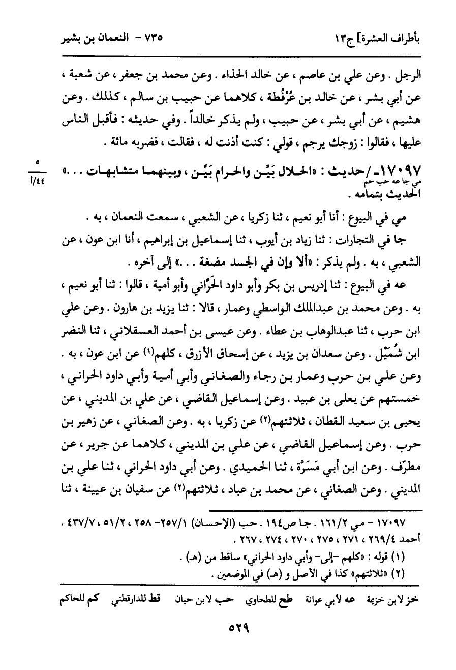 17097 - حديث (مي جا عه حب حم) : "الحلال بَيِّن والحرام بَيِّن، وبينهما متشابهات ... " الحديث بتمامه.