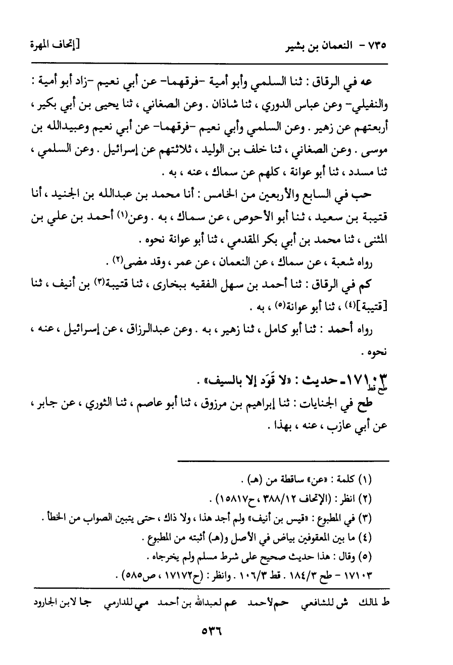 -[537]- قط في الحدود: ثنا محمد بن سليمان النعماني، ثنا الحسين بن عبد الرحمن، ثنا موسى بن داود، عن مبارك بن فضالة، عن الحسن، سمعت النعمان بن بشير، به.