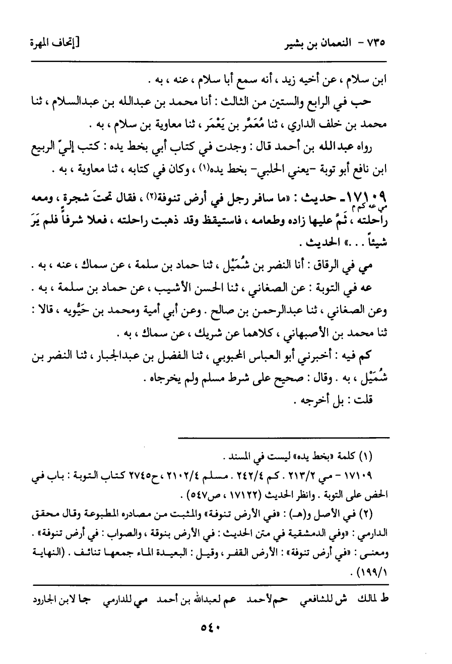 17109 - حديث (مي عه كم م) : "ما سافر رجل في أرض تنوفة، فقال تحتَ شجرة، ومعه راحلته، ثَم عليها زاده وطعامه، فاستيقظ وقد ذهبت راحلته، فعلا شرفا فلم يرَ شيئاً ... " الحديث.