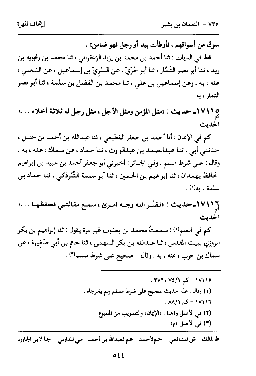 17116 - حديث (كم) : "نضّر الله وجه امرئ، سمع مقالتي فحفظها ... " الحديث.