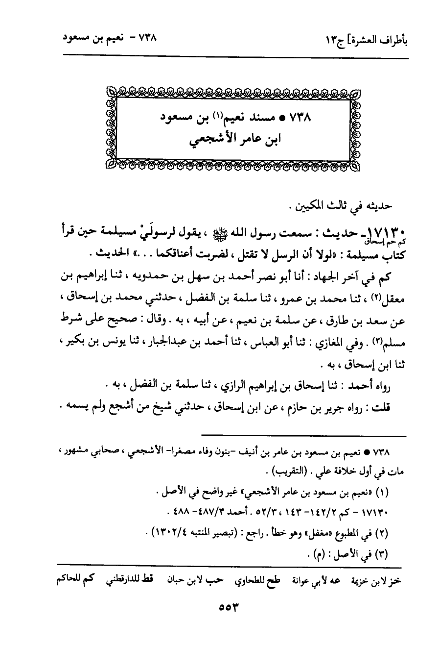 738 ـ مسند نعيم بن مسعود ابن عامر الأشجعي