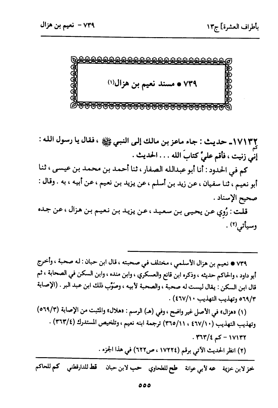 17132 - حديث (كم) : جاء ماعز بن مالك إلى النبي - صَلَّى اللَّهُ عَلَيْهِ وَسَلَّمَ -، فقال يا رسول الله: إني زنيت، فاقم عليَّ كتابَ الله ... الحديث.