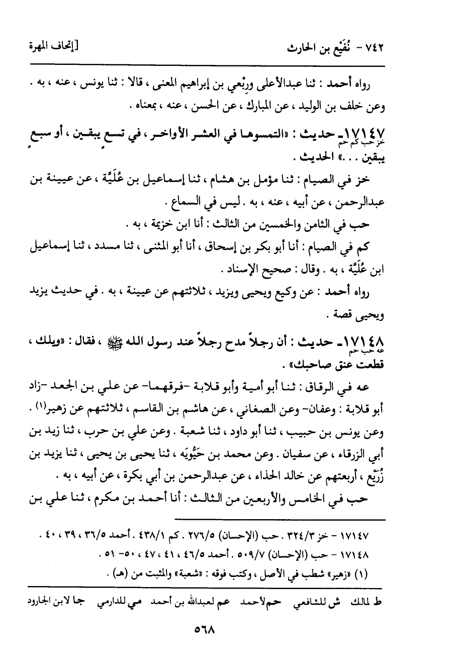 رواه أحمد: ثنا عفان، ثنا وهيب ويزيد بن زُريع، قالا: ثنا خالد الحذاء، عن عبد الرحمن، به. وعن عبد الرزاق، عن سفيان. وعن محمد بن جعفر، عن شعبة.