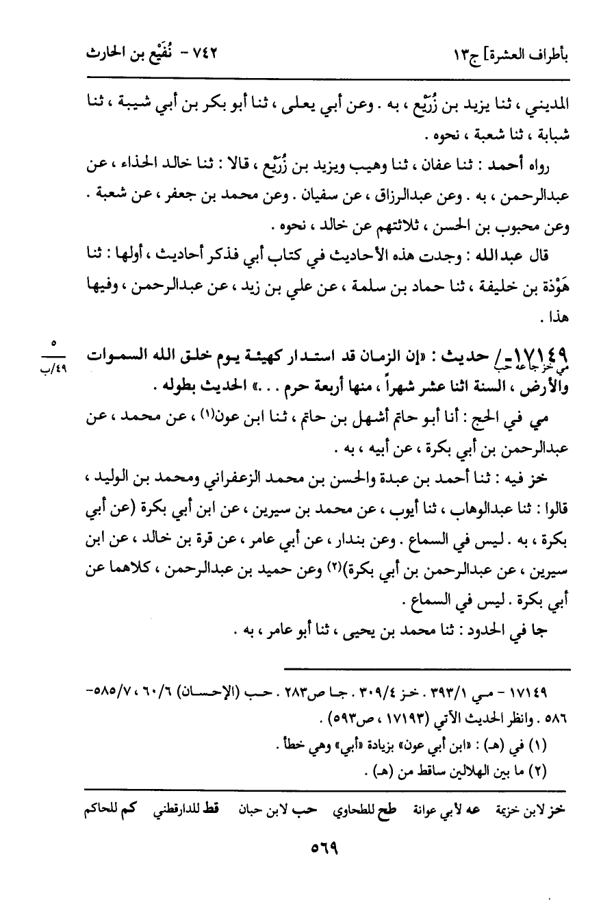 17149 - حديث (مي خز جا عه حب) : "إن الزمان قد استدار كهيئة يوم خلق الله السموات والأرض، السنة اثنا عشر شهراً، منها أربعة حرم ... " الحديث بطوله.