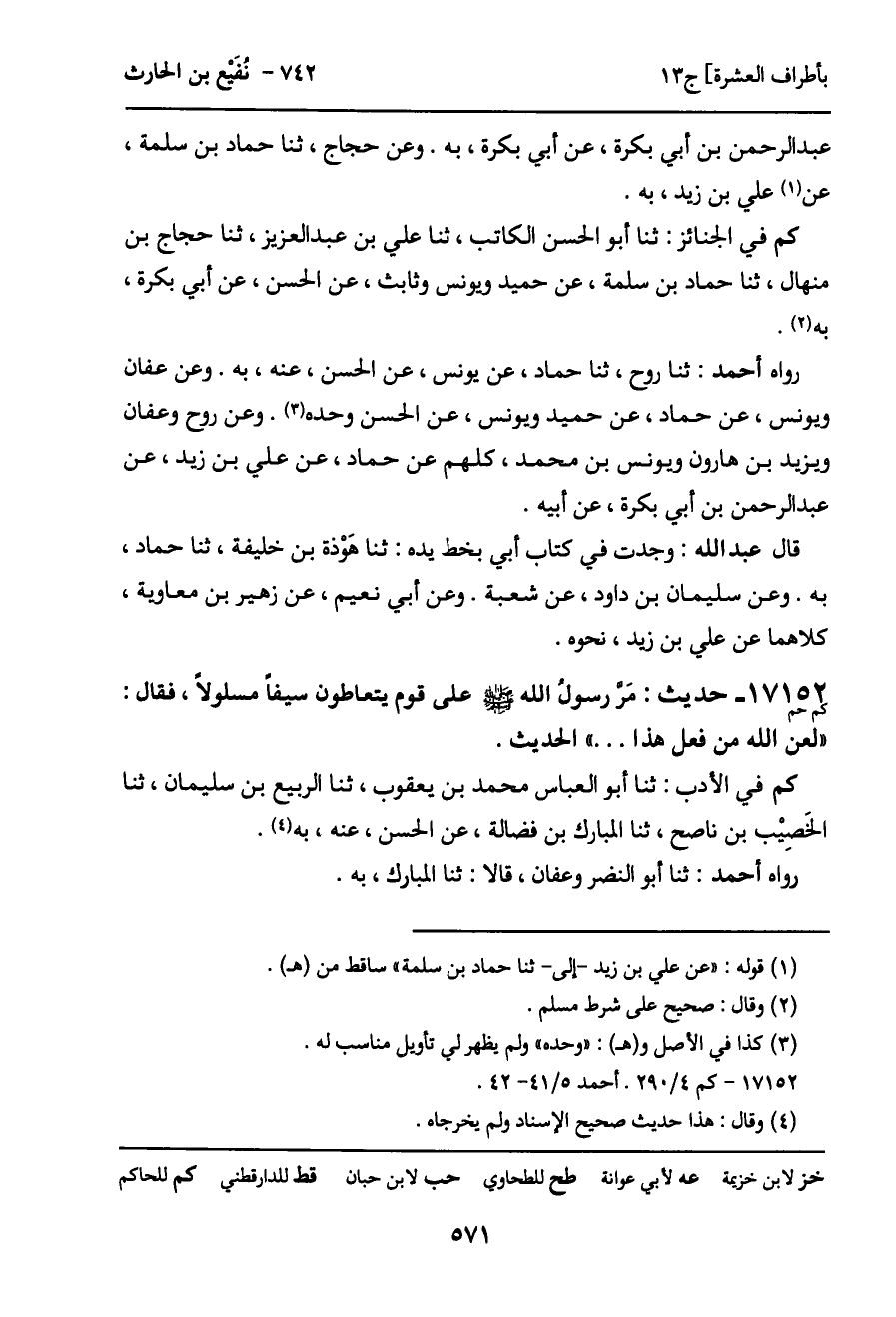 17152 - حديث (كم حم) : مَر رسول الله - صَلَّى اللَّهُ عَلَيْهِ وَسَلَّمَ - على قوم يتعاطون سيفا مسلولاً، فقال: "لعن الله من فعل هذا ... " الحديث.