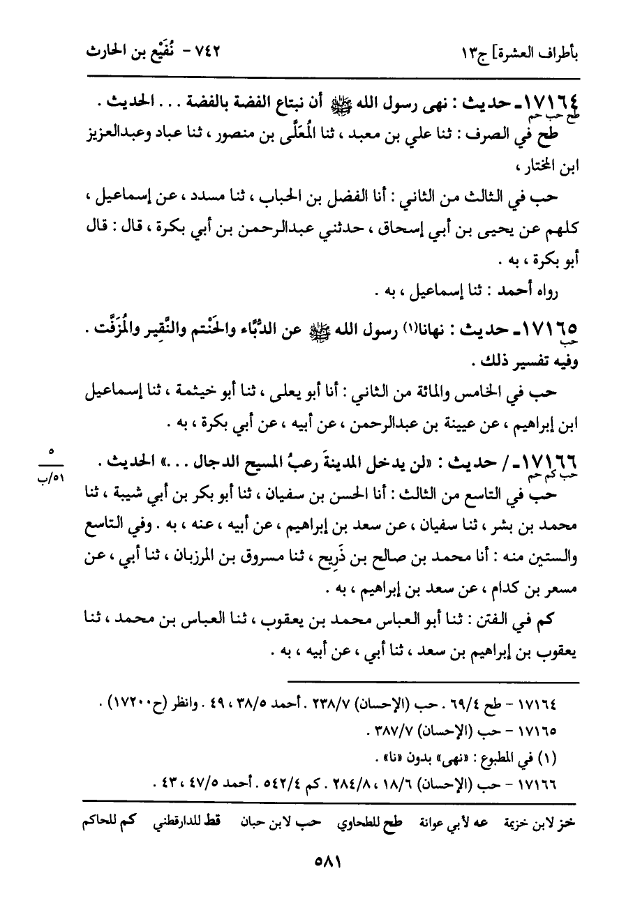 17164 - حديث (طح حب حم) : نهى رسول الله - صَلَّى اللَّهُ عَلَيْهِ وَسَلَّمَ - أن نبتاع الفضة بالفضة ... الحديث.