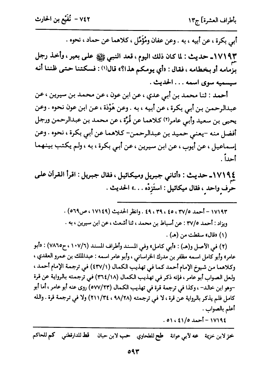 -[594]- أحمد: عن عبد الرحمن وعفان، كلاهما عن حماد، عن علي بن زيد، عن عبد الرحمن بن أبي بكرة، عن أبيه، به.