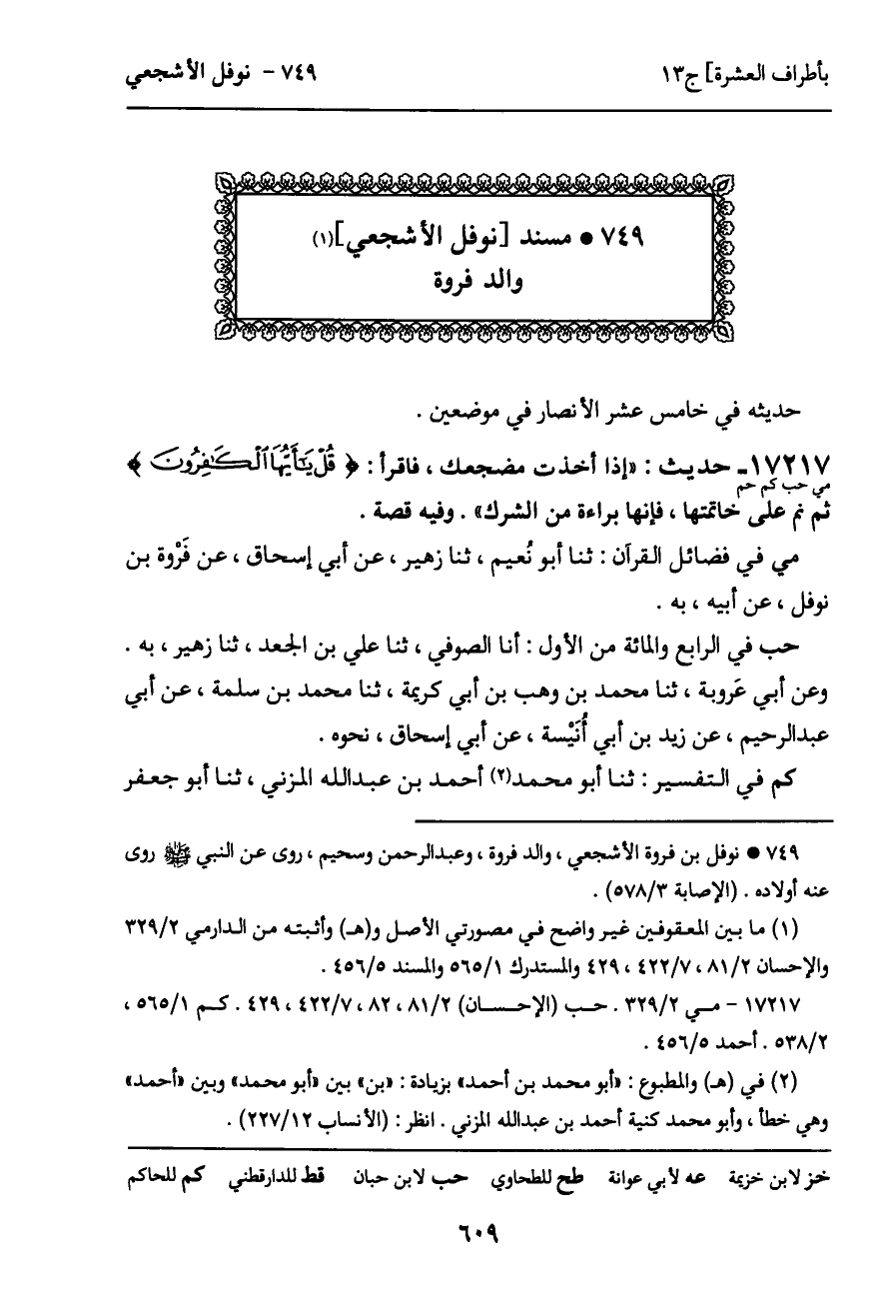 749 ـ مسند [نوفل الأشجعي] والد فروة