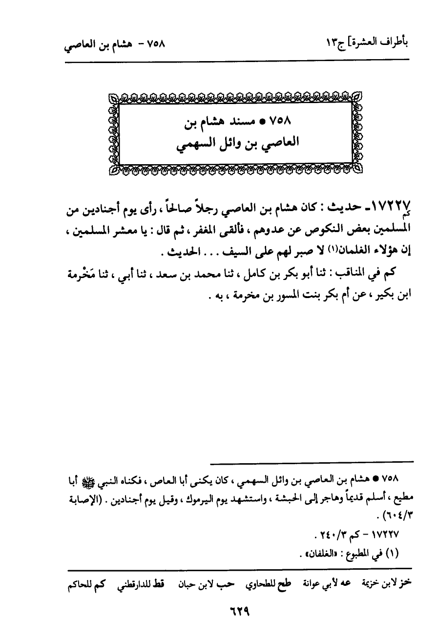 758 ـ مسند هشام بن العاصي بن وائل السهمي